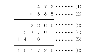 (세 자리수) x (세 자리수)는 다음과 같은 과정을 통하여 이루어진다.
