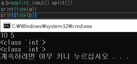 map() 함수를 사용하여 여러 개의 데이터를 한 번에 int형으로 바꿔준다.